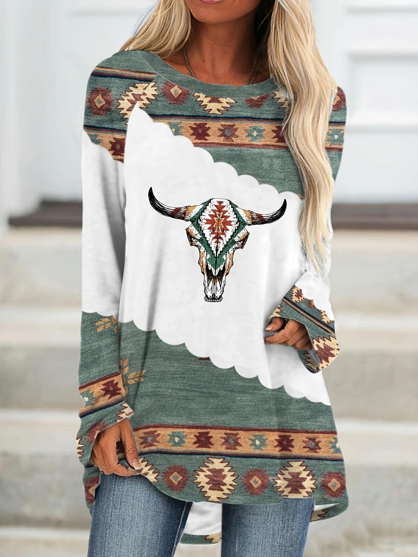 Damen Vintage Azteken-Cowgirl-Sweatshirt, Rundhalsausschnitt, Western-Tier-Grafik, Pullover, ethnisches Langarm-Shirt